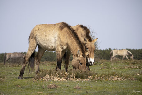 El caballo de Przewalski, caballo salvaje mongol o takhi (Equus ferus przewalskii) es una subespecie única de caballo asilvestrada a partir de animales domesticados en Asia central por la cultura Botai hace más de 5000 años. Casi se extinguió a mediados del siglo XX, pero por suerte fue salvado de la desaparición por algunos naturalistas, a partir de un centenar de ejemplares que sobrevivían en cautividad en zoológicos y colecciones privadas a principios de los noventa. Su estado actual es crítico, reducido a unas pocas manadas que viven en el Parque Nacional Hustai del suroeste de Mongolia, el Parque Nacional Kalamery de China y varios ejemplares más en parques zoológicos y reservas, como la nuestra. La población total es de unos 1000 ejemplares en todo el mundo. Durante el Pleistoceno, los ancestros del Przewalski estaban difundidos por gran parte de Asia, mientras que en Europa convivían con otra especie muy similar, el tarpán (Equus ferus ferus), que se extinguió en el siglo XIX. Existen numerosas representaciones de esta subespecie en el arte paleolítico que encontramos en cuevas, abrigos y al aire libre en países como Portugal, Francia o España.